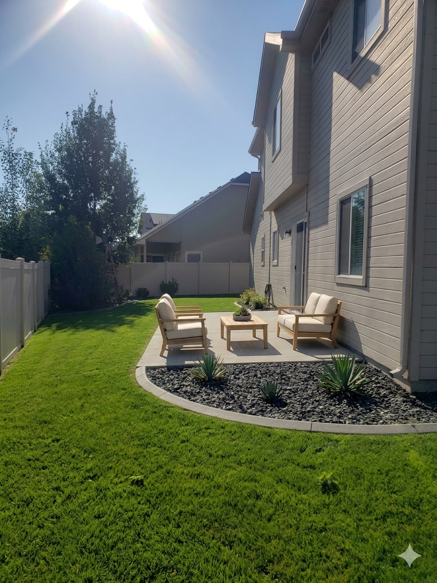 Step outside to enjoy a large backyard with a patio, ideal for relaxing or hosting gatherings.