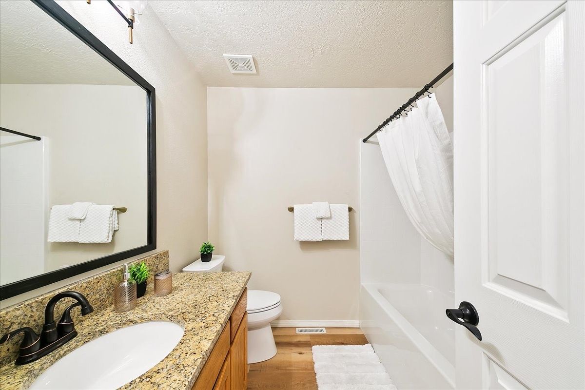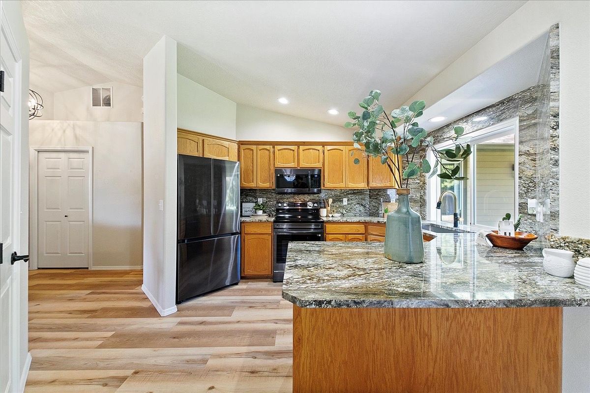 The kitchen is functional and inviting, featuring a breakfast bar, ample storage, and room for all your culinary adventures. Each bedroom is well-sized with generous closet space, and the primary suite offers privacy and comfort.